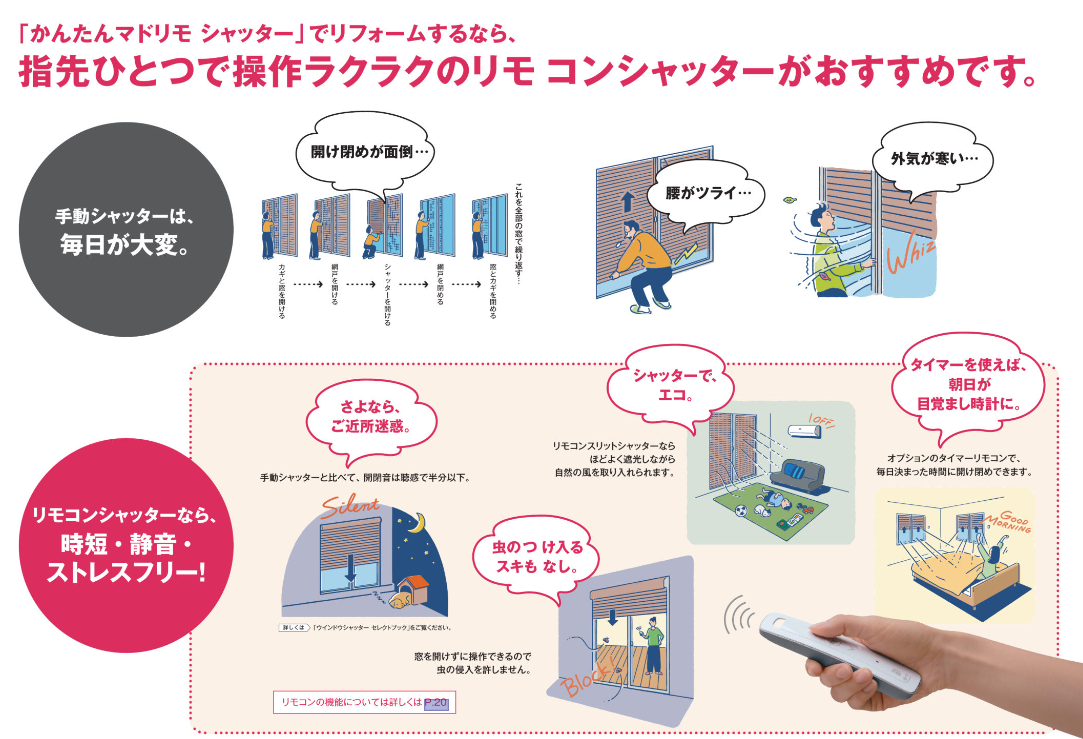 リモコンシャッターでは、毎日の開け閉めを快適にし