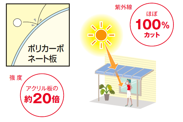 ポリカーボネート板が紫外線を防いでくれるので、シミ予防にはうれしいポイントです