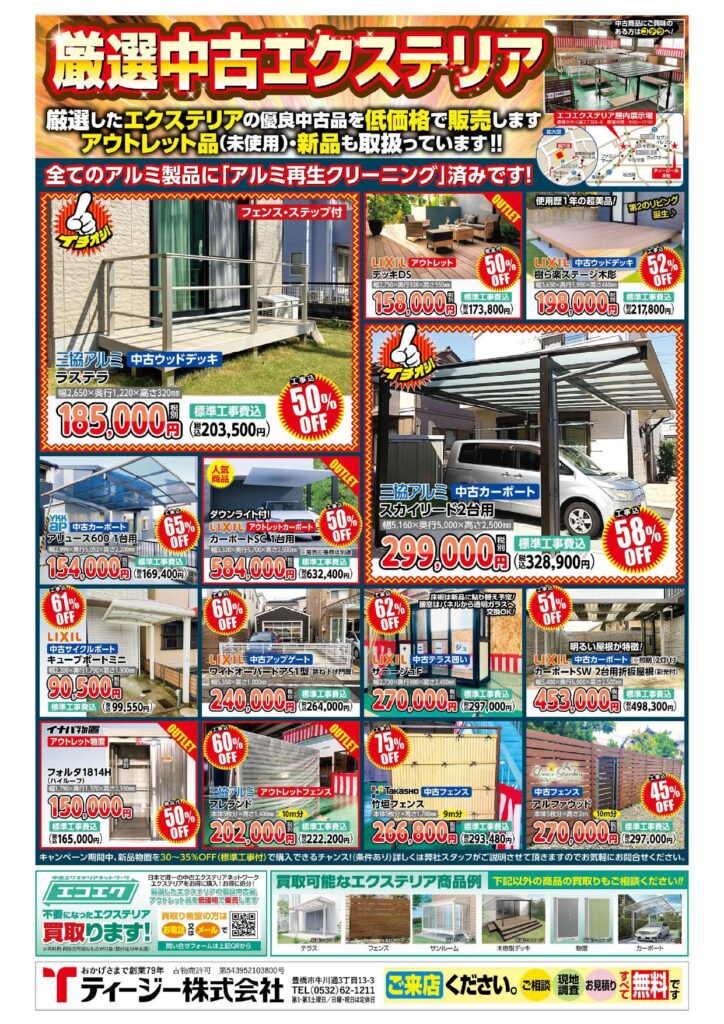厳選したエクステリアの優良中古品を低価格で販売します。