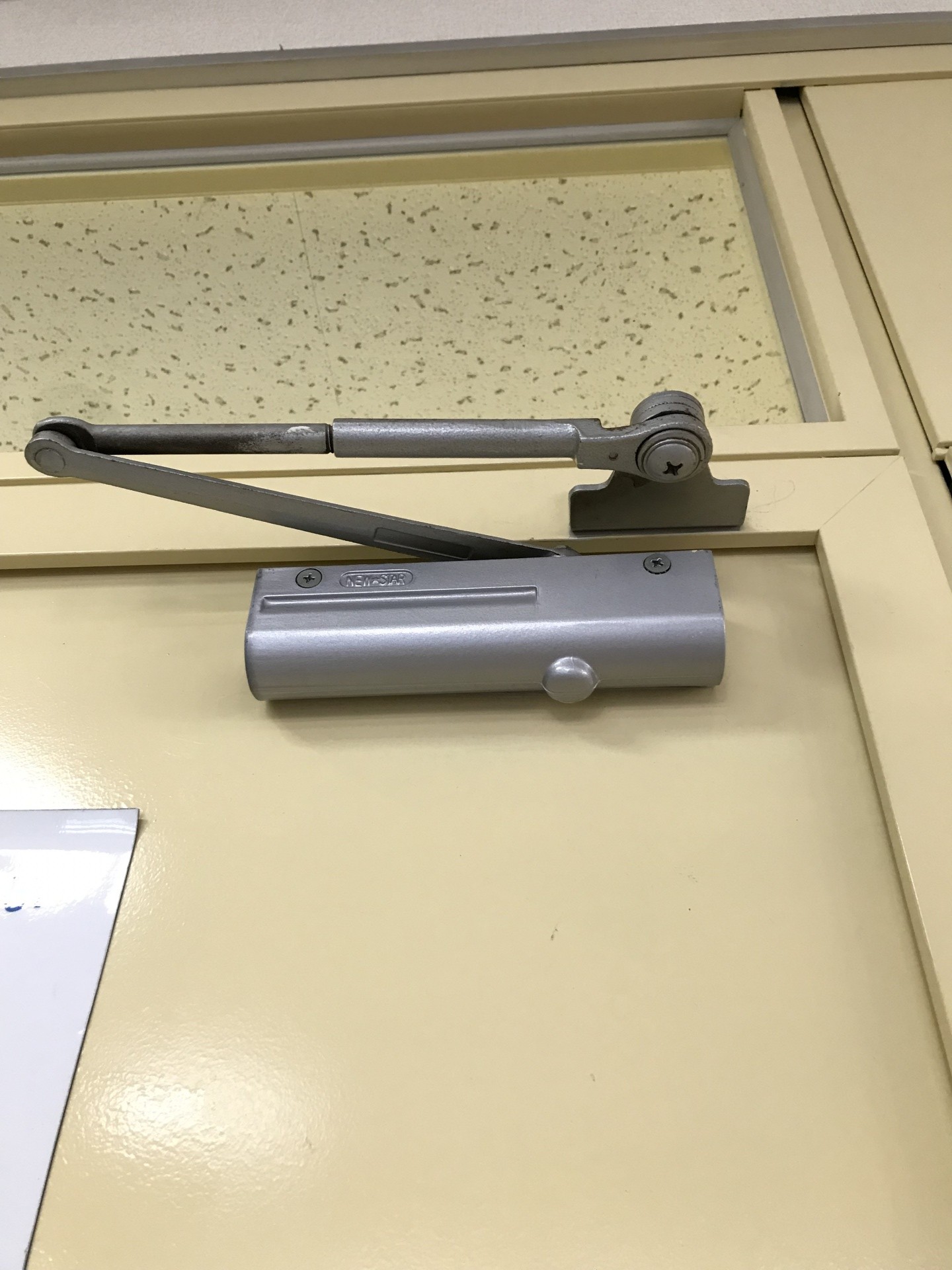 「それ」はドアクローザーといい、油圧によりドアの開閉スピードを調整してくれるものです。