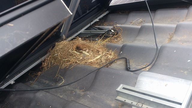 太陽光パネルを設置してから鳥が屋根上に集まるようになって鳥の糞で洗濯物が汚れてしまうのと、太陽光パネルの下に鳥が巣を作って、太陽光パネルが心配になったというのがお悩みでした。