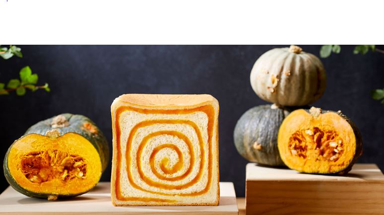 かぼちゃは北海道産を使用。やさしい甘みと、ほっこりしたかぼちゃのあんをシナモンの香りと共に銀座に志かわのもちもち食感の生地に巻き込みました。かぼちゃの天然の甘みとほんのり甘い銀座に志かわの食パンとが融和した味覚をぜひお召し上がりください。