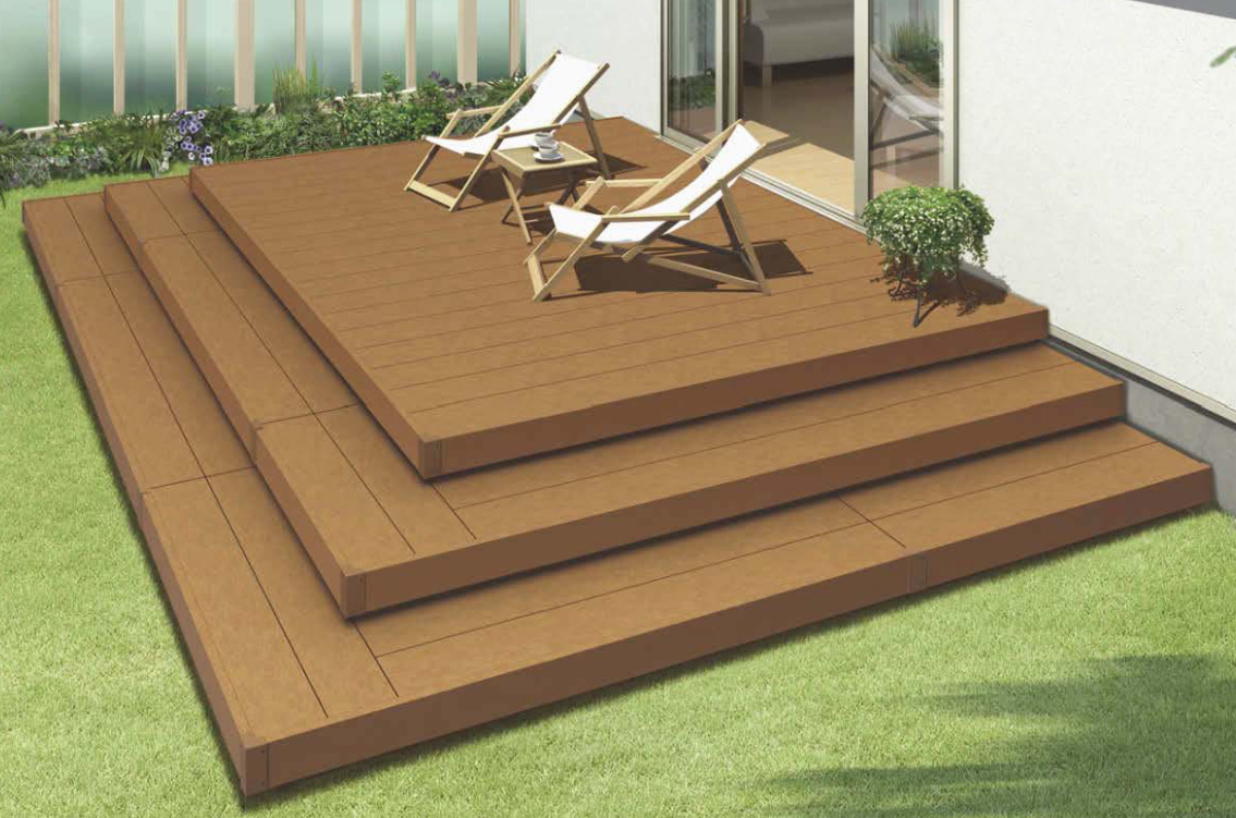 そのため天然木と比べて、耐候性耐腐朽性耐水性に優れたデッキになります