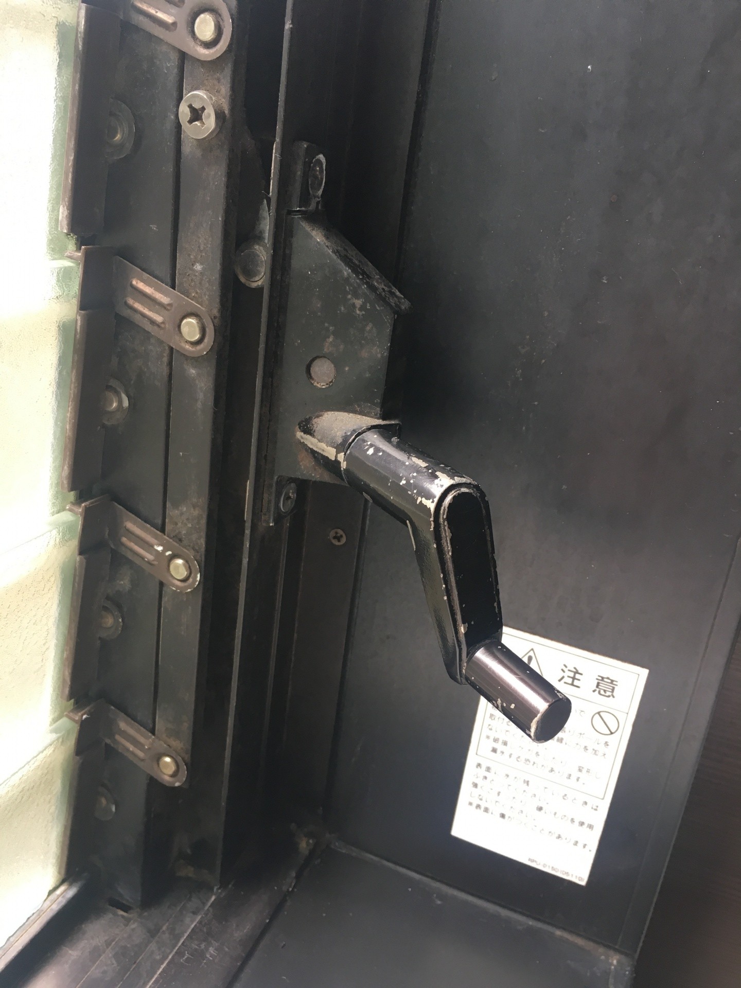 ルーバー窓や開き窓はクルクル回るハンドルが付いていて