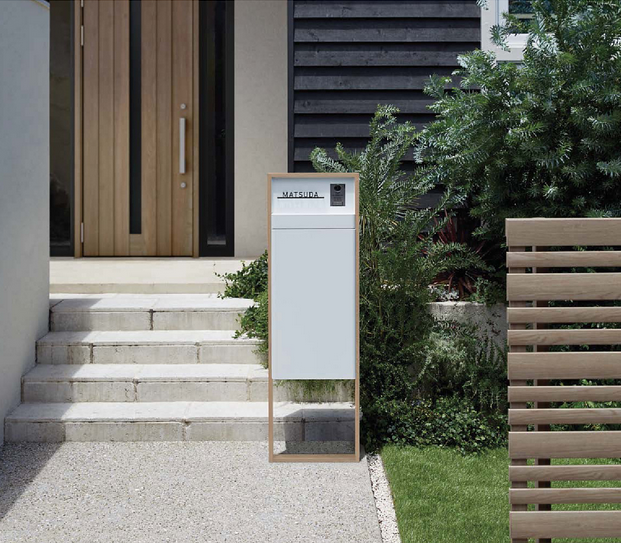 宅配ボックス、ポスト、表札、インターホンがすべて詰まっているので、