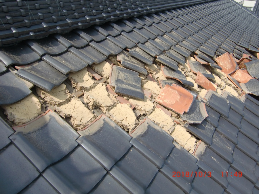 豊橋市で瓦屋根、多くは土葺きの屋根瓦の被害が多く