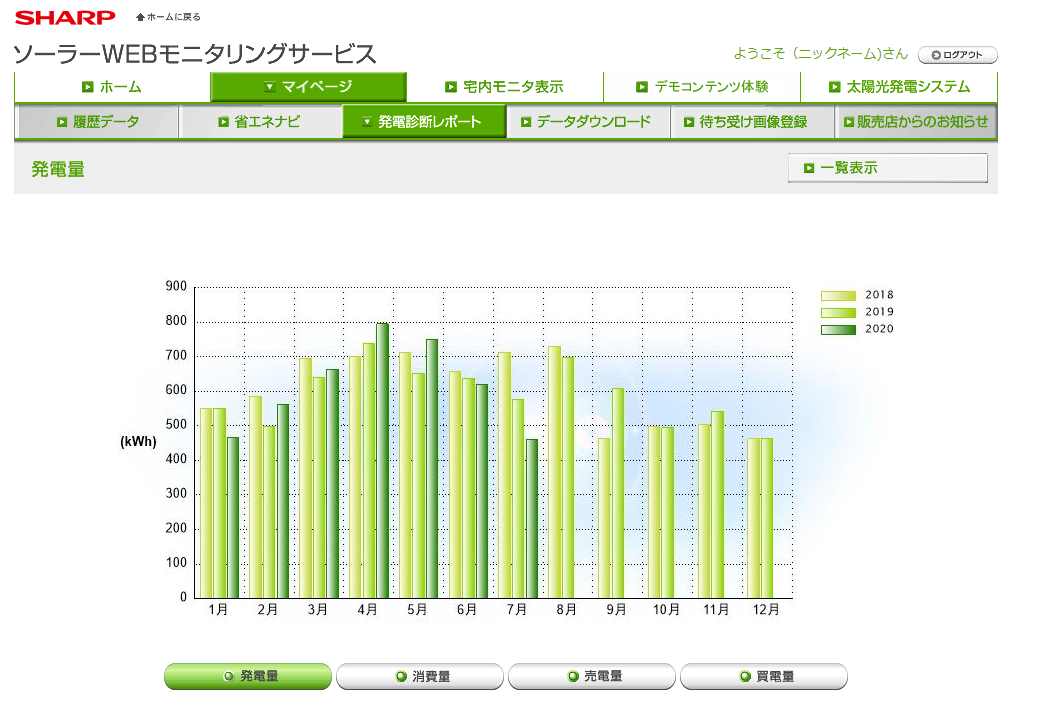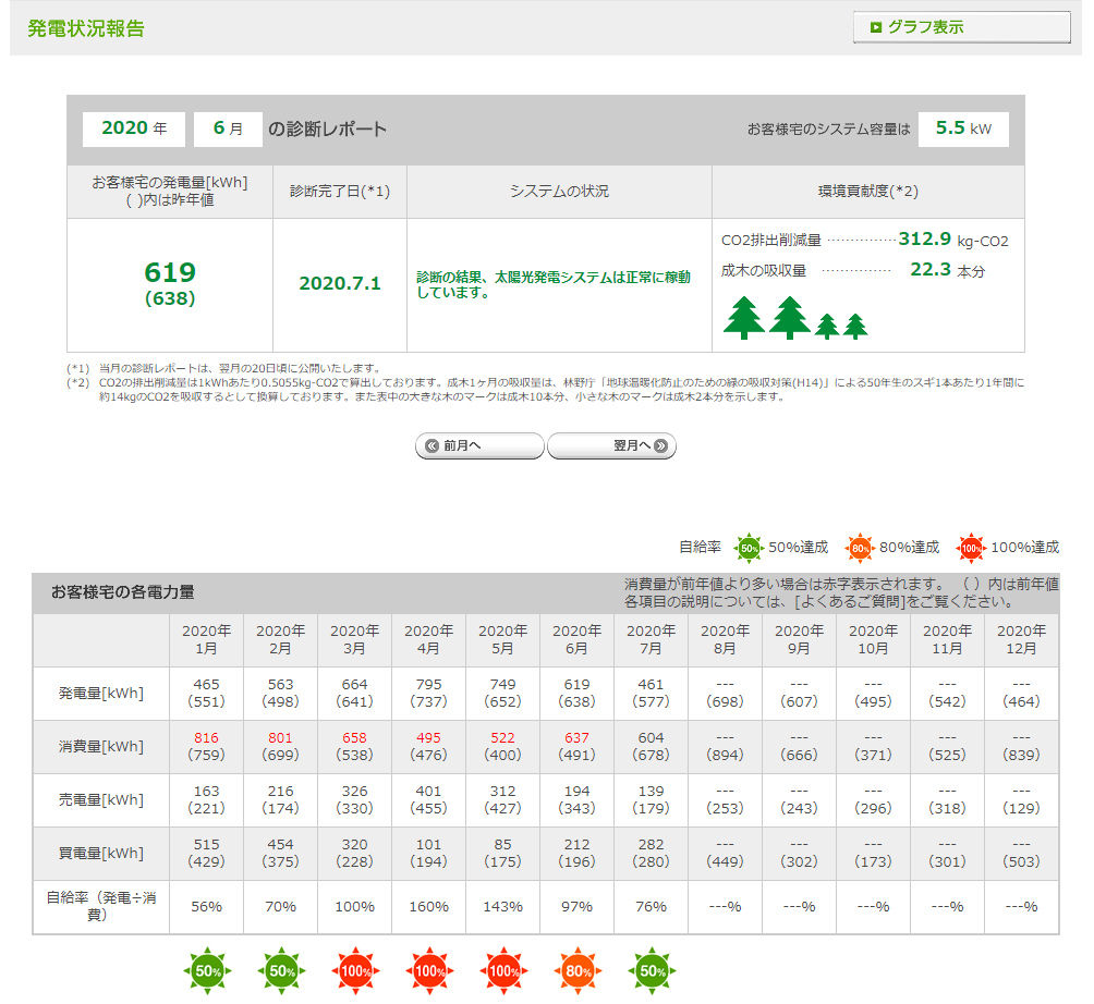 太陽光発電のWebモニタリングサービスに加入している方が見れる診断レポートです