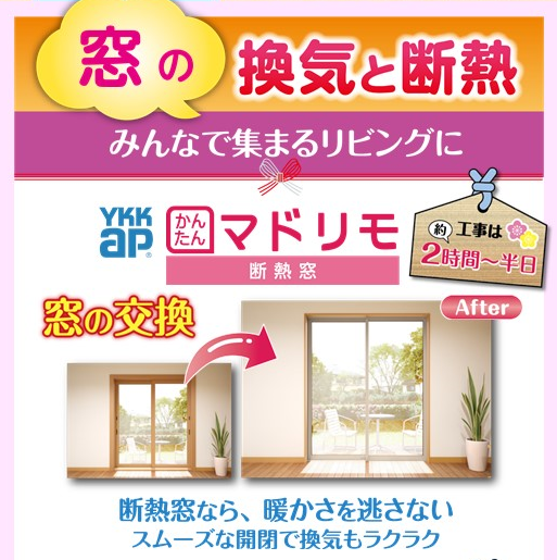 ★かんたん マドリモ「断熱窓」(YKKAP)なら、工事は約2時間~半日です。