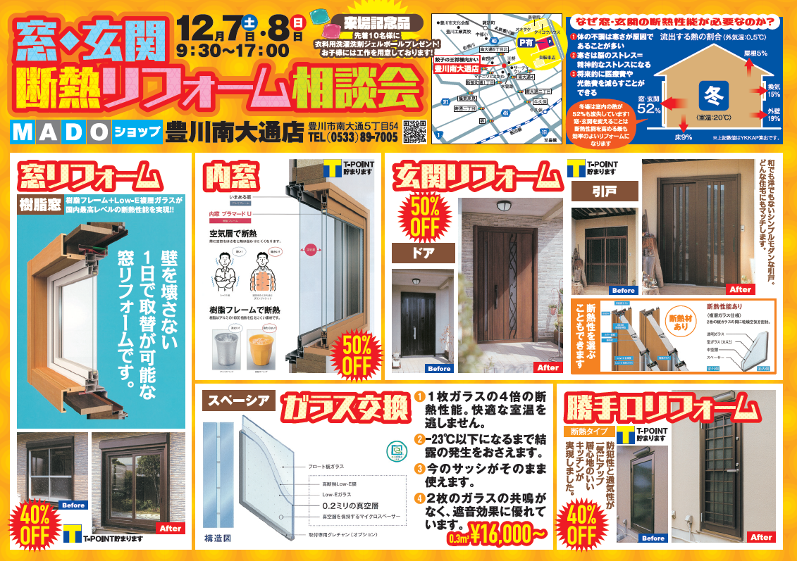 12月7日(土)12月8日(日)と2日間 窓・玄関断熱リフォーム相談会を開催します