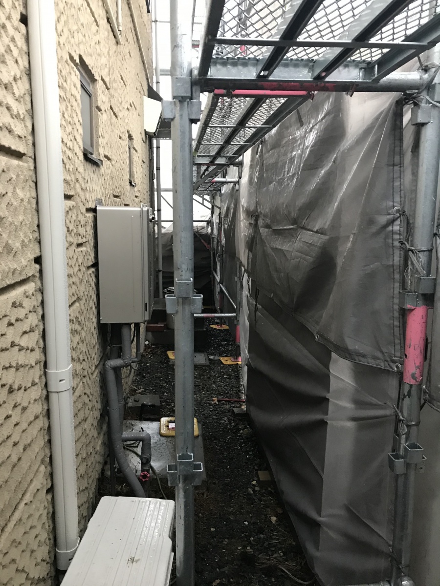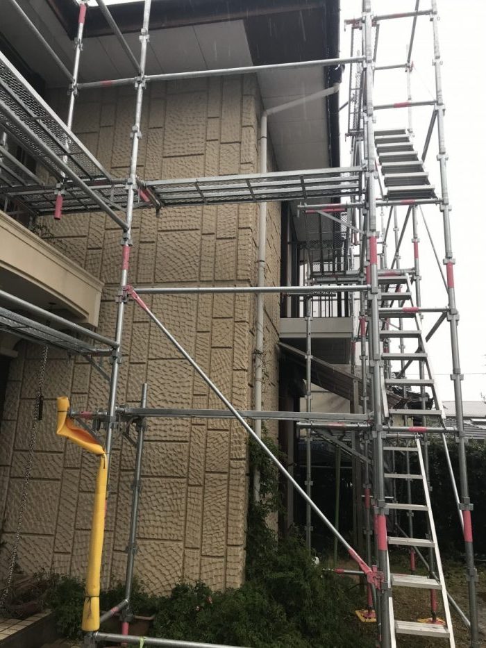 まずは、1日かけて足場の組み立て作業をしました。