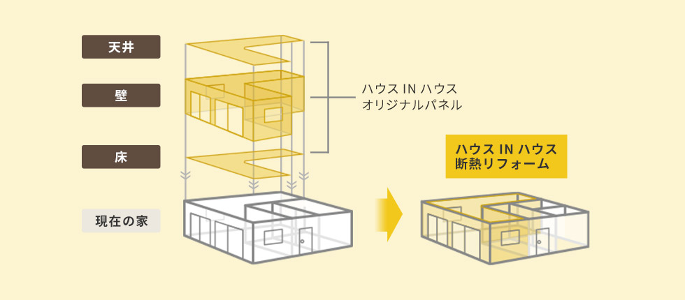 天井、壁、床を壊さず、新築のようなお部屋になり、夏の暑さ、冬の寒さから家族を守る、断熱リフォームで、