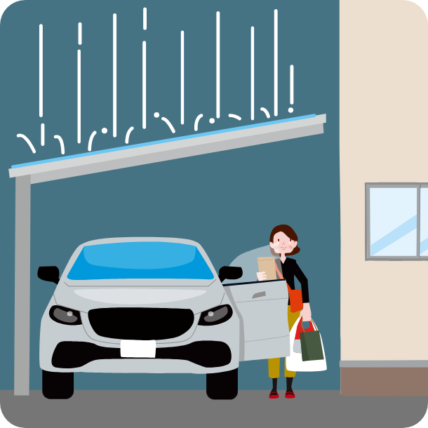 ご自宅以外にも、お店の駐車場での荷物の運搬、ベビーカーや車椅子の方の為にもカーポート設置をおススメします