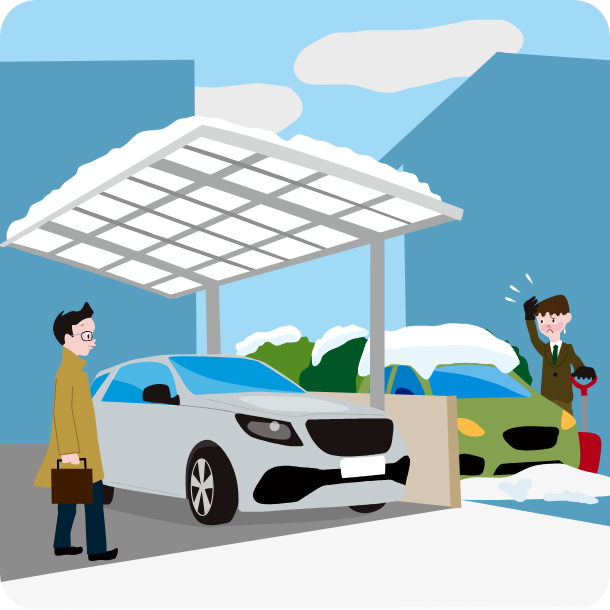 そんな時、カーポートの屋根は、放射冷却でガラスの表面から逃げていく熱を抑えてくれるので、車に霜が降りるのを防ぐ効果があります。