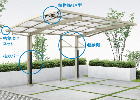 YKKAPのカーポートには、さまざまなオプションや別売品が用意されています。