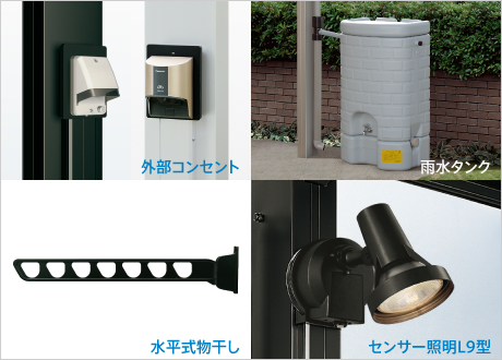 その他、センサーライト、柱カバー、雨水タンク、枯葉よけネット、鋳物飾りなどございます