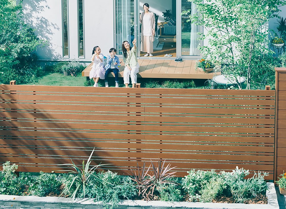 「リウッドデッキ」(YKKAP)にはフェンスや門扉、高さのあるパーティション(目隠し)も付けられるので、犬の脱走防止や、プライバシーも守れ、リウッドデッキ上にもドッグランを作れます。
