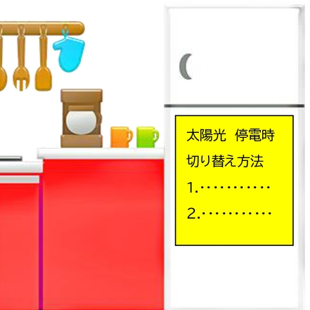 操作方法を知っている方がいない時に停電になる可能性もありますので、事前に操作方法を印刷し、冷蔵庫や掲示板など、目につくところに貼り、家族や社員が分かるようにしておくことが大切です。