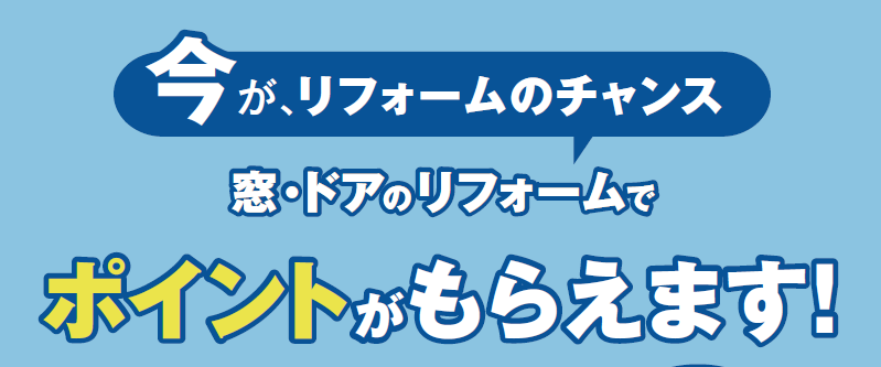 今までの住宅ポイント制度はエコや省エネといったところで、開口部(窓・ドア)の改修や、床壁天井などの断熱改修が必須でしたが
