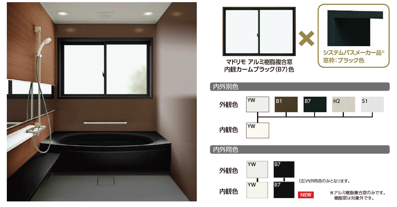 今までは浴室専用の窓リフォーム商品は内観色ホワイトしかありませんでしたがこの4月より内観色ブラックが新登場します。