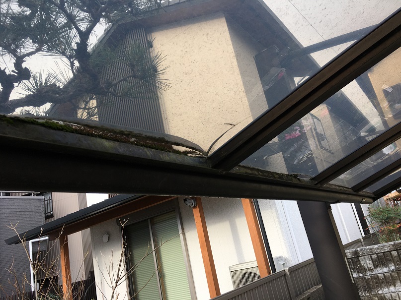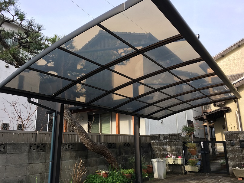 前回現場を確認させて頂き、見積書を作成してご連絡する旨をお話ししていると、お客様から「これも交換できる?」と聞かれたのがカーポートの屋根材でした。