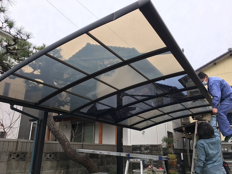 カーポート屋根材交換を実際に工事風景と一緒にご紹介します。