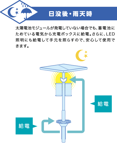 公園や避難所にあれば、普段の安全確保の照明として以外にも、災害などの非常事態にも役に立ちます。