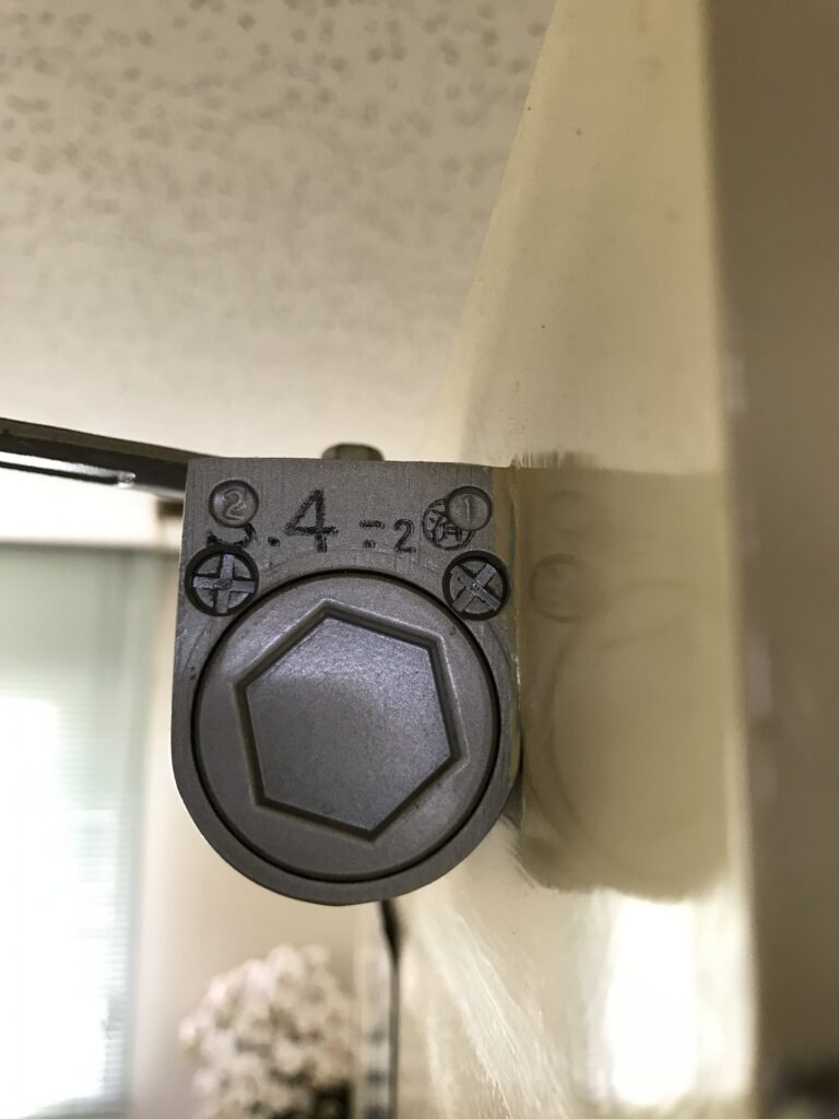 さらに写真に注目しますと、ドアクローザーのネジの上に①、②と数字が記されていることが分かります。