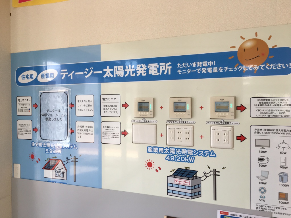 今回は、豊橋牛川通にあるティージー株式会社の太陽光の展示物の紹介をしたいと思います