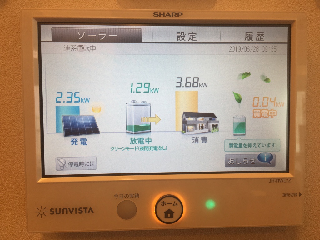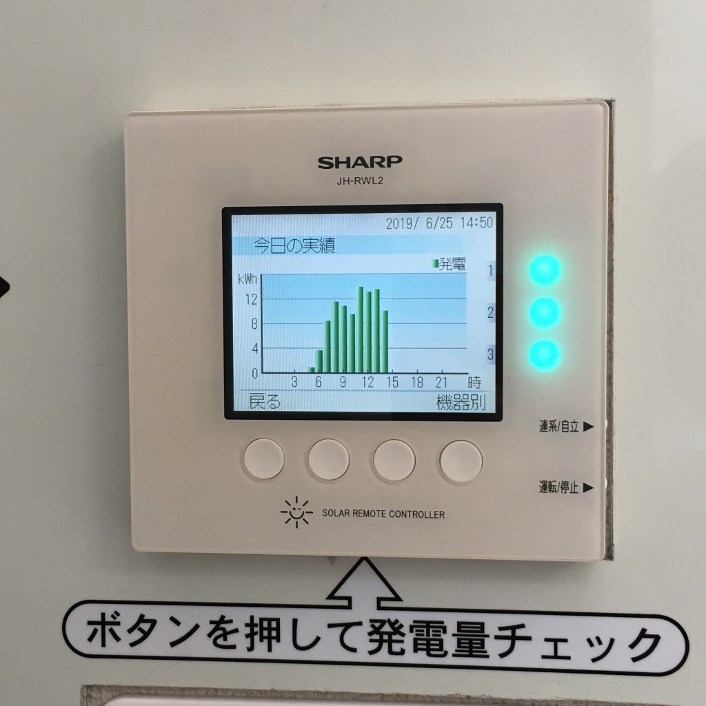 モニターが3台付いて、こちらも住宅用と同じように発電・消費量などを見ることが出来ます