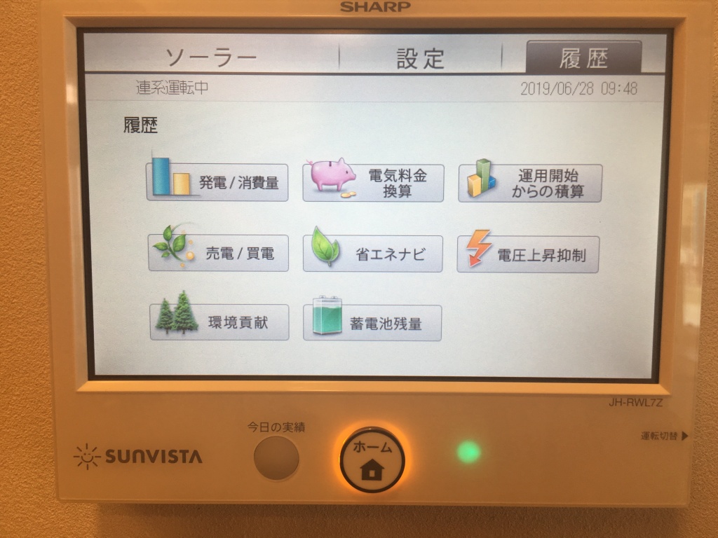 日間、月間、年間の発電・消費量や、自給率、運用開始からの積算などが一目で分かるようになっています