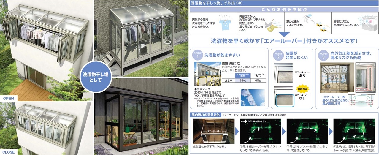 急な雨でも安心して洗濯物を干しておけるのがテラス囲いです
