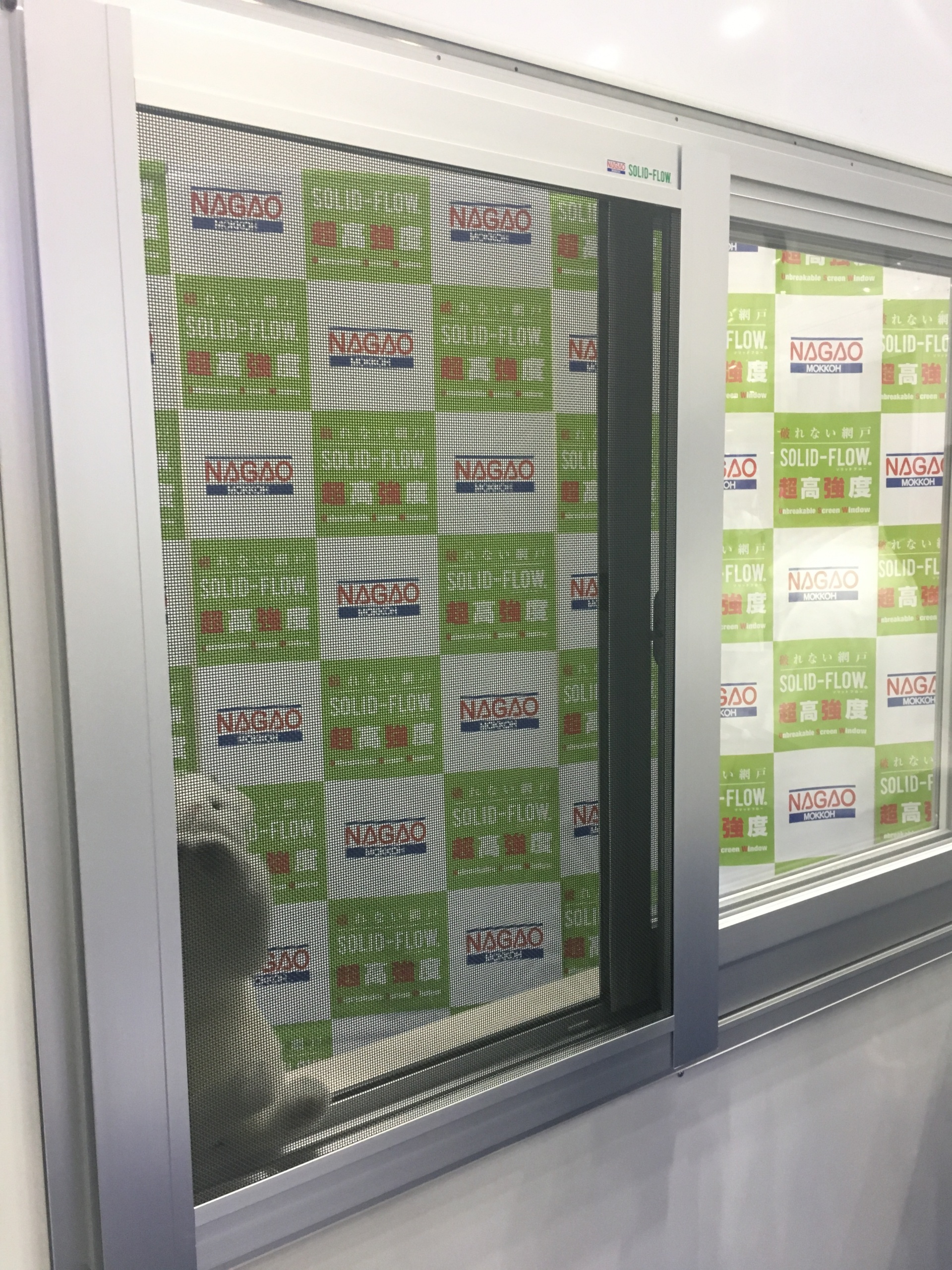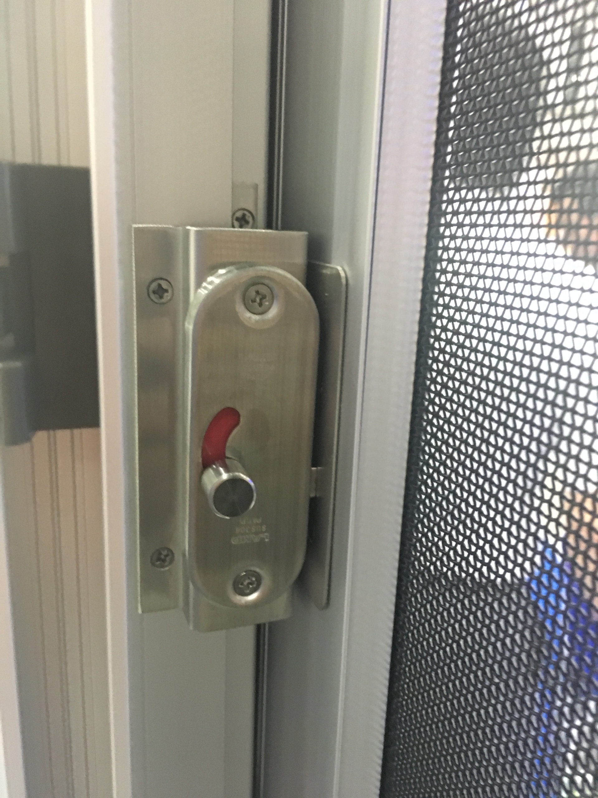 写真はステンレスの網戸なんですが、破れない網戸ということで防犯用に鍵も付いていました