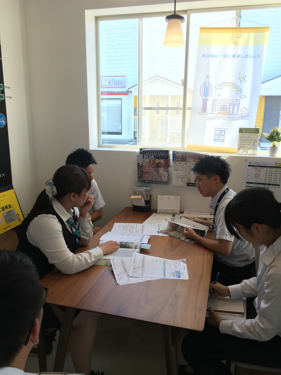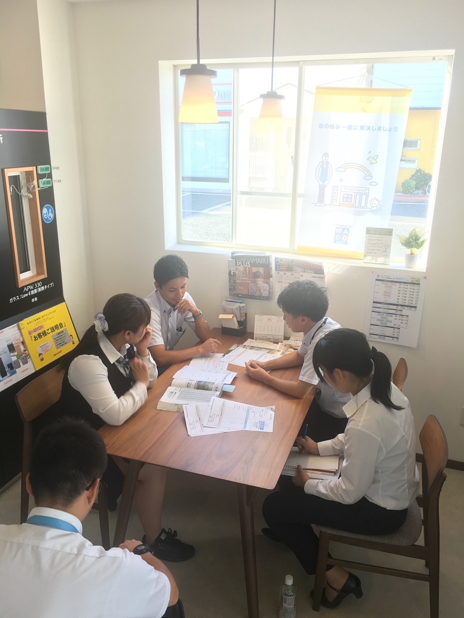 週に1回行っていて、お客様への説明の仕方や商品情報やお得な情報などを持ち寄ってディスカッションのような会議になるようにしています。