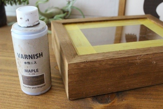 木製のケースに水性ニスを塗っていきます!
