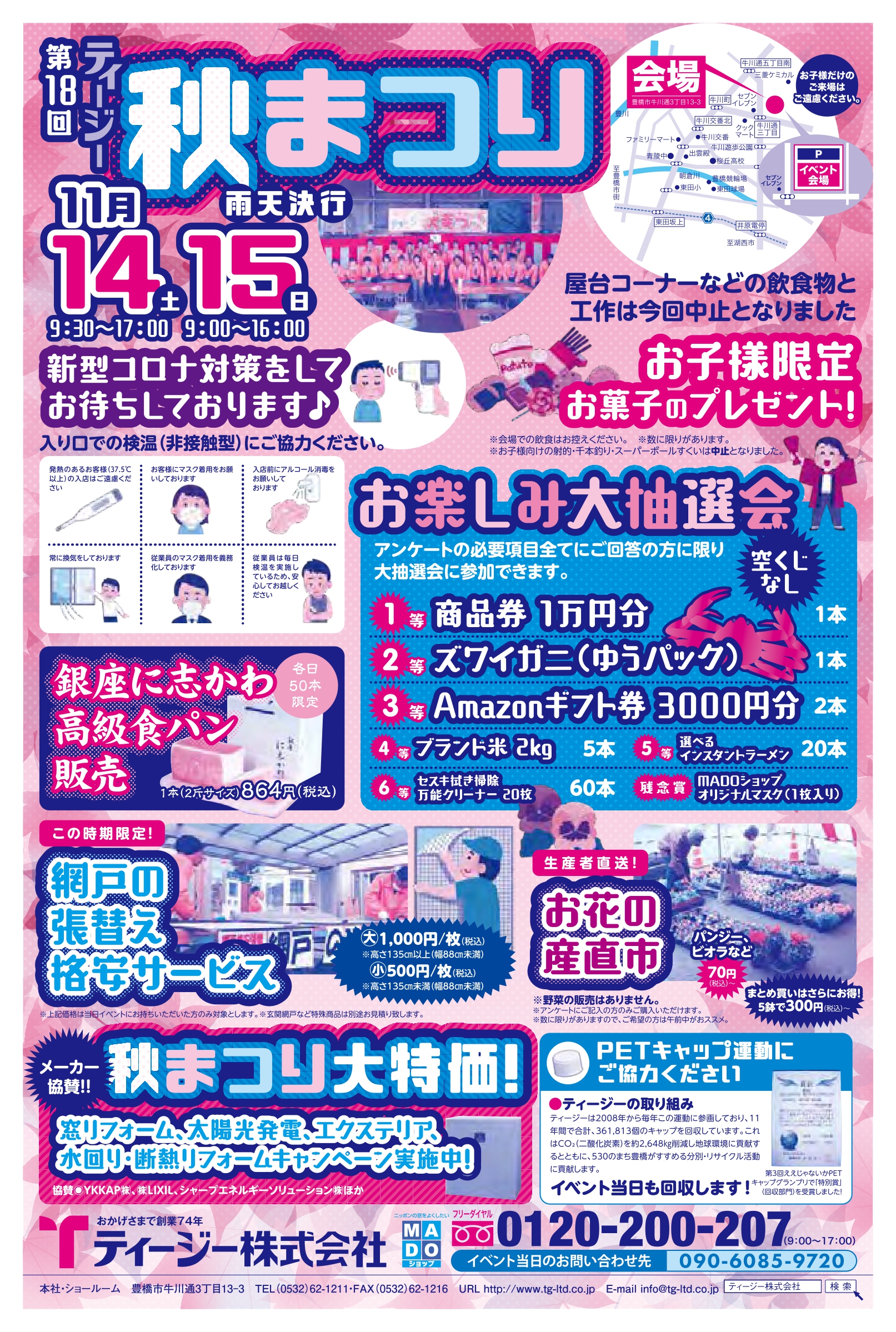 今回は毎年恒例の「ティージー秋まつり」についてのお知らせです