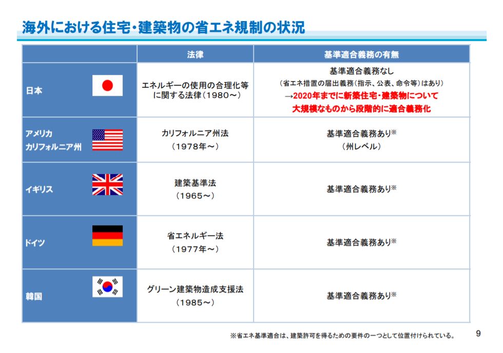 日本は2020年義務化予定の制度が見送りになったので、まだ先進国レベルには届かないのが日本の住宅です。