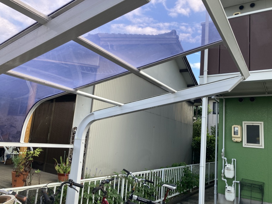せっかくのテラス屋根もポリカがない状態ではせっかくの機能が台無しです