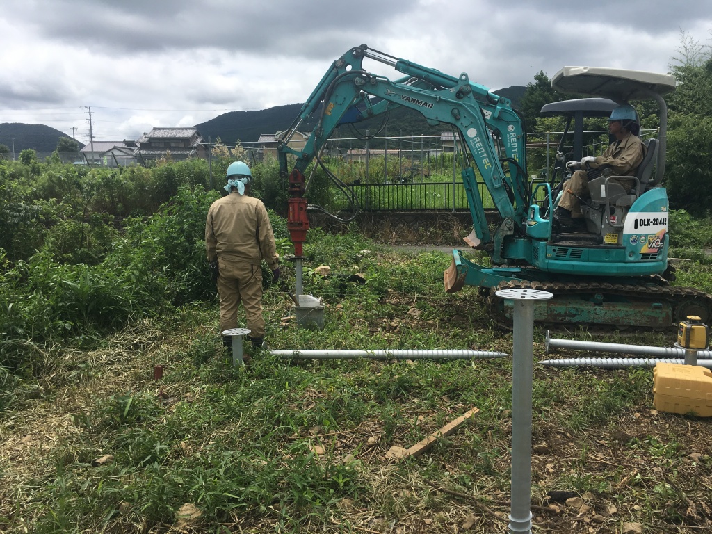 今回、50kWシステムの太陽光発電のスクリュー杭工事の工期は2日間で完了しました。
