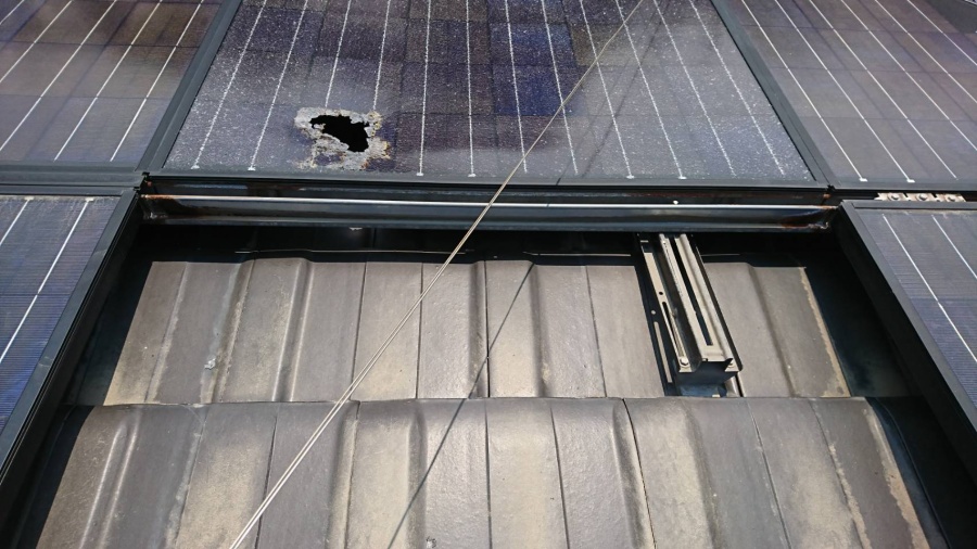 太陽光パネルを突き破っているため相当な衝撃があったのだと思います。