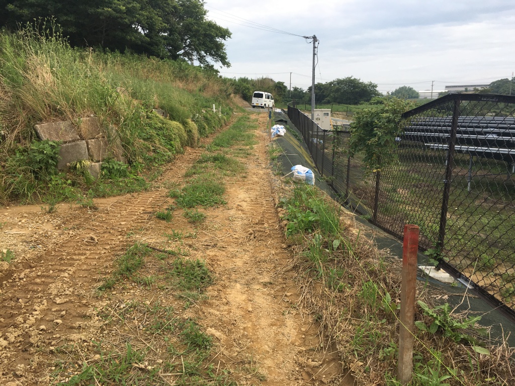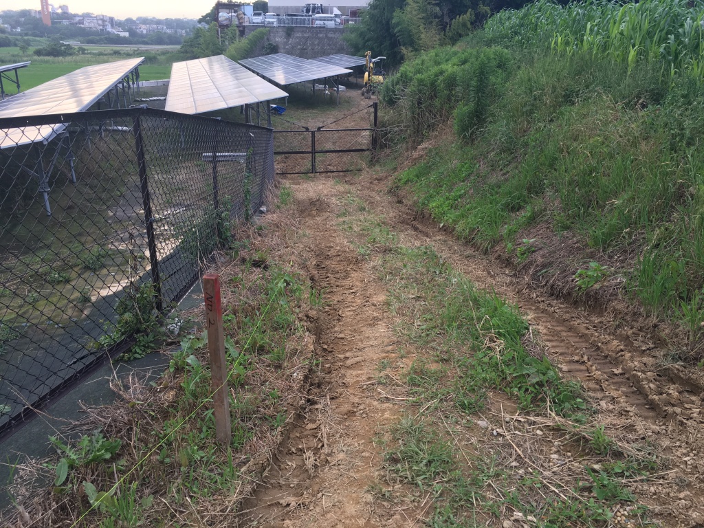 発電所内は防草シートをしていますが発電所内に土が流れ込み