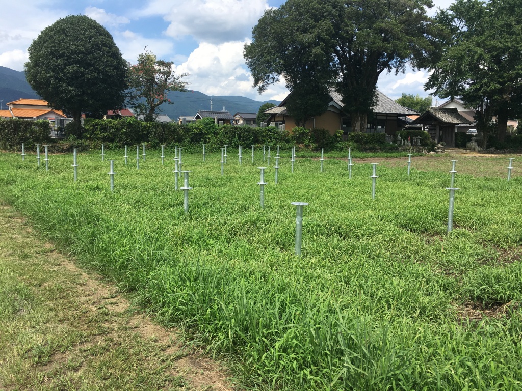土壌によって草の生えるスピードは違いますがここは早いです。周りも見てもこの時期であるとある一定のところまでは生えてきます。