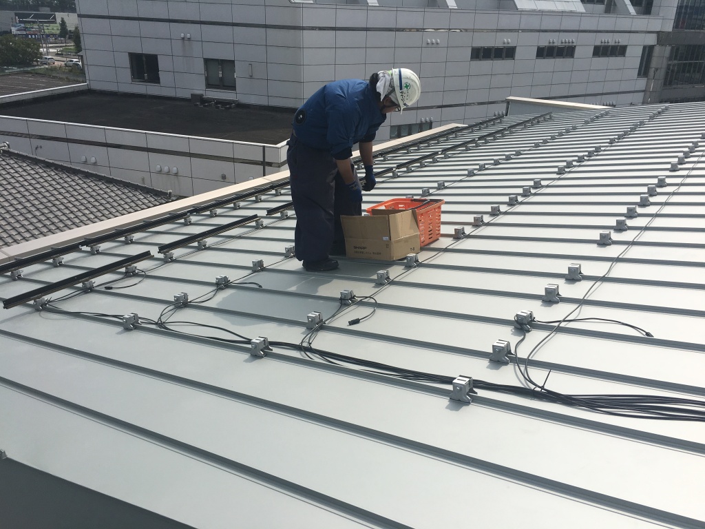 シャープではガルバリウム鋼板のハゼ部分をつかんで設置する工法ではなく野地板に金具を固定する方法で設置が一般的でした。
