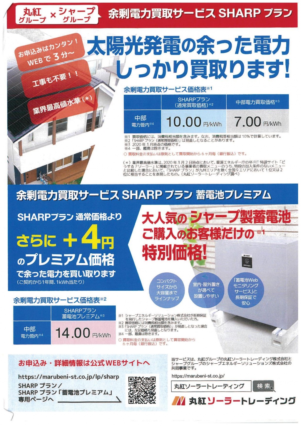 中部電力管轄 売電単価14円/kwh(1年間限定)