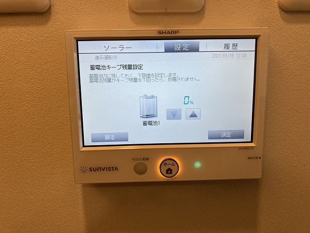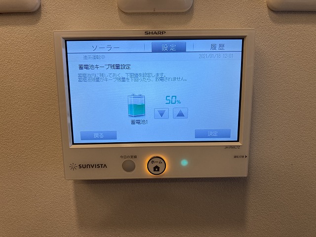 タッチパネル式になっているため設定をタッチして蓄電池のモードやキープ残量などの設定ができます。