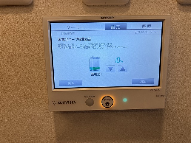 蓄電池運用中に急な停電が起こったときを想定してモニターで残しておく蓄電池残量をその都度変えることもできます。