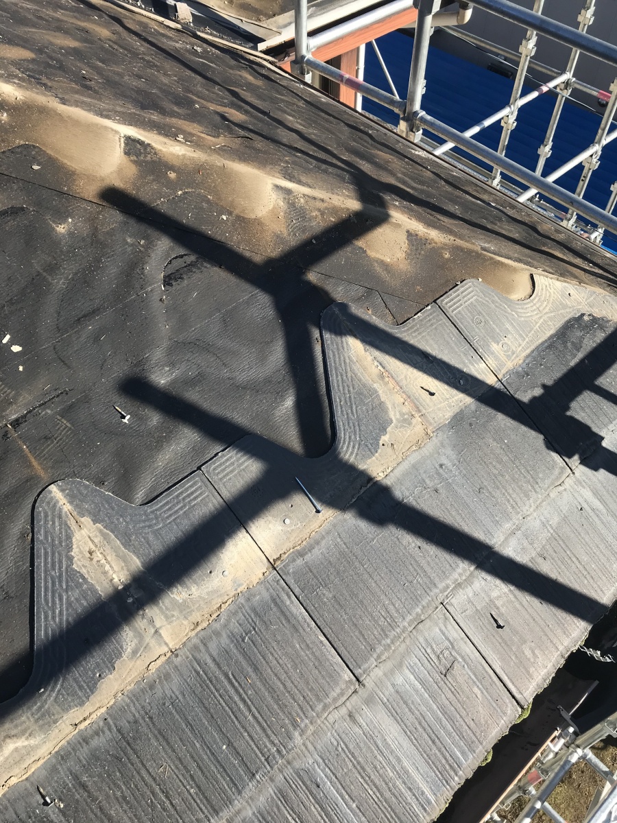 既設のアスベストのスレート屋根からガリバリウム銅板屋根へ新しくし