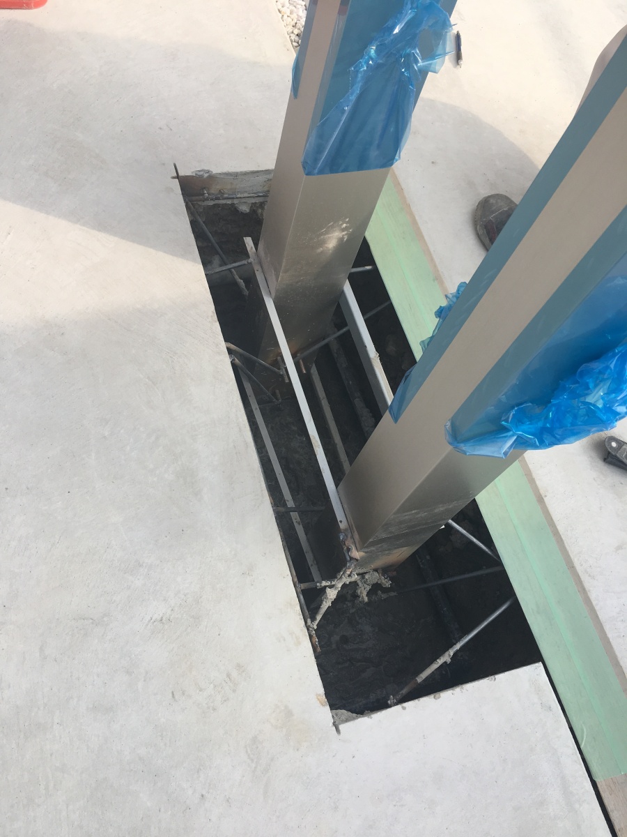 ハツリ工事とは、カーポートの柱を埋め込む際の柱穴位置にコンクリートやアスファルトがある場合、柱穴用に除去作業を行う工事のことを言います!