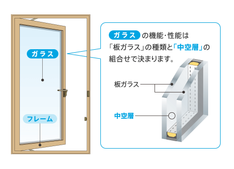 窓は、ガラスとフレーム(枠・障子)で構成されています。