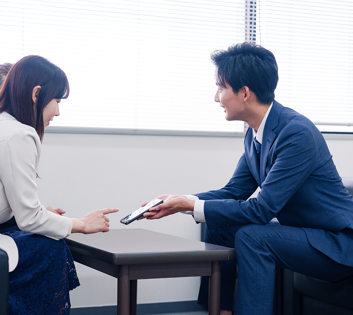ティージーの営業職は、より営業に専念できる体制を整えています。通常は営業が行うことが多い見積作成などの資料作成業務は事務スタッフに、契約後