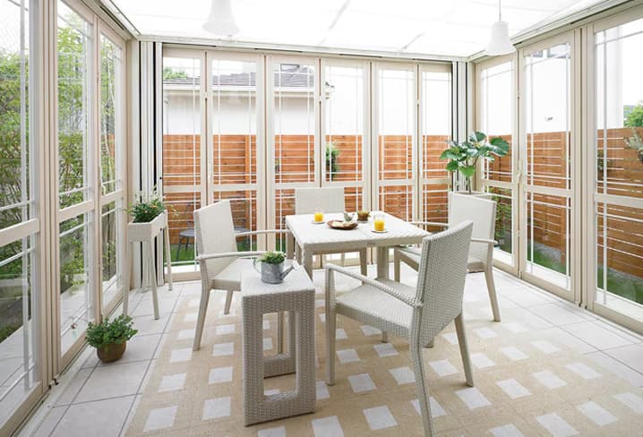 【テラス囲い・バルコニー囲い】は、部屋と庭をつなげる新たな空間です。「増築は大変…、でも趣味の場が欲しい」「雨、風、花粉、黄砂、鳥のフン、不審者から洗濯物を守りたい」「急な雨から洗濯物を守りたい」そんな方におすすめです。